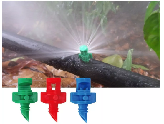 - Microjet, es un regador peqeño pero capaz de regar franjasde hasta 2 mestros de distancia, son ideales para cercos vivos, zonas arbustibas y maciszos.