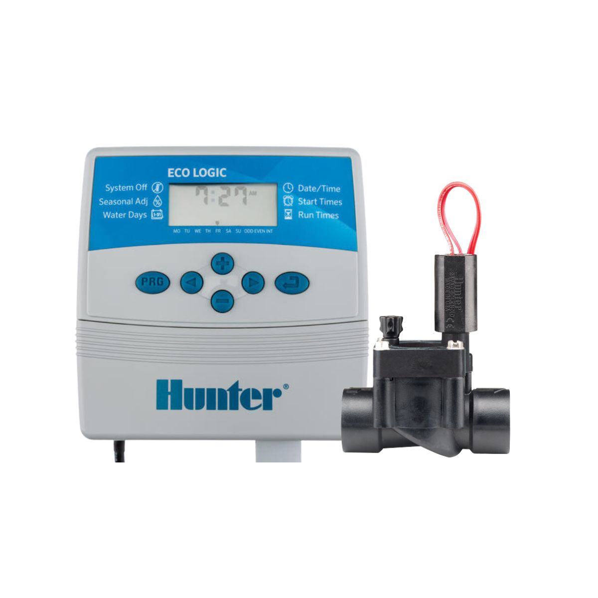 El programador Eco-Logic dispone de destacadas funciones como una programación sencilla mediante pulsador, Quick Check de Hunter, dos programas independientes con cuatro tiempos de arranque cada uno, un calendario de 365 días, ajuste estacional (de 10% a 150%), compatibilidad con sensores de clima y memoria no volátil. El Eco-Logic está disponible en modelos de 4 y 6 estaciones, cada uno con funciones que permiten maximizar la eficiencia del sistema. En cuanto a sencillez, fiabilidad y rentabilidad, nada supera a Eco-Logic de Hunter.